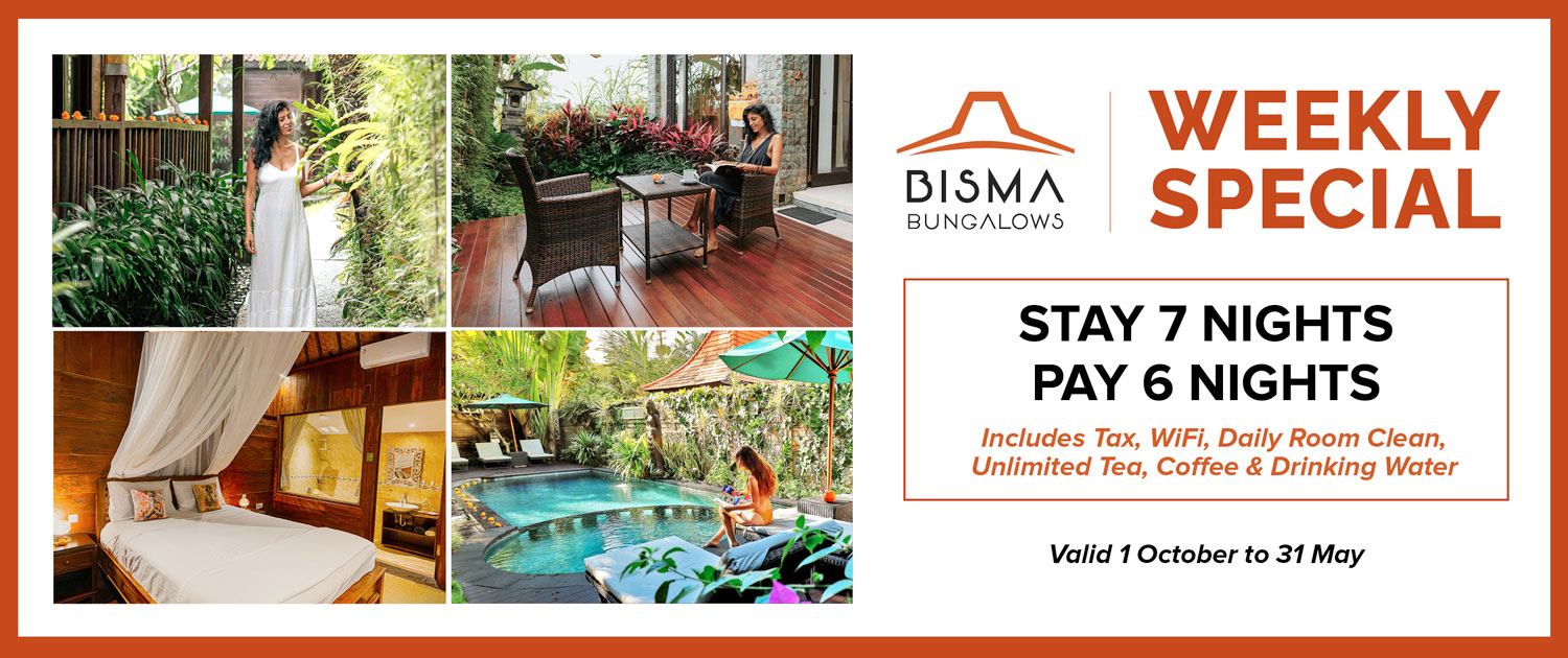 - Bookings must be made direct via hello@bismacottagesubud.com